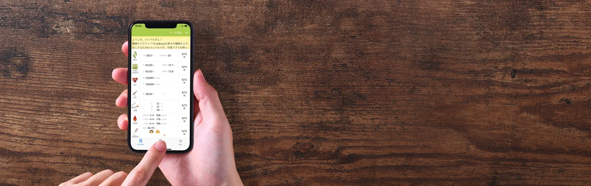 対応健康機器を使う事で、日々の計測が簡単・正確に出来ます。
